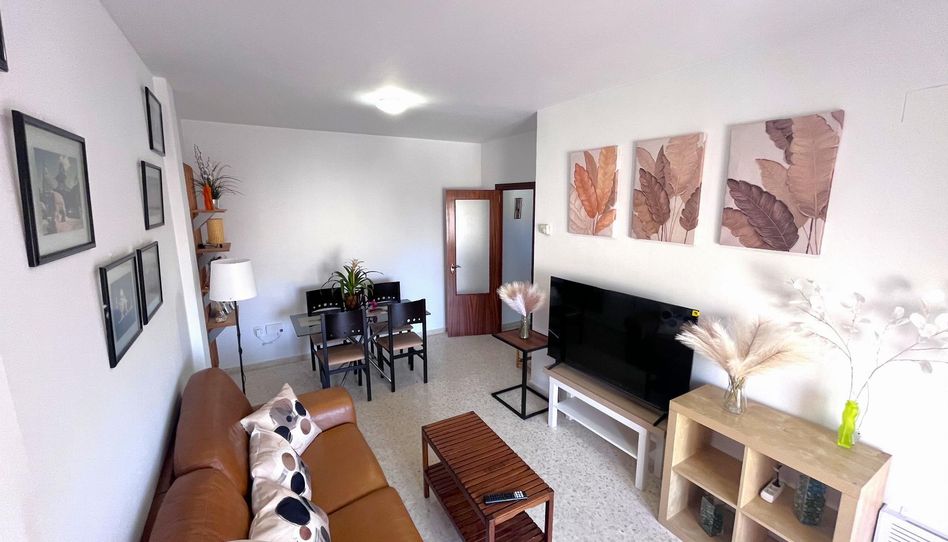 El inmueble dispone de hall de entrada, cocina equipada con electrodomésticos, amplio salón comedor con acceso a terraza, 3 dormitorios, 2 baños completos, terraza, un aparcamiento en superficie sin numerar dentro de la urbanización (según disponibilidad) y otro subterráneo en el mismo edificio con acceso directo a la vivienda. La urbanización cuenta con parque infantil y piscina privada.