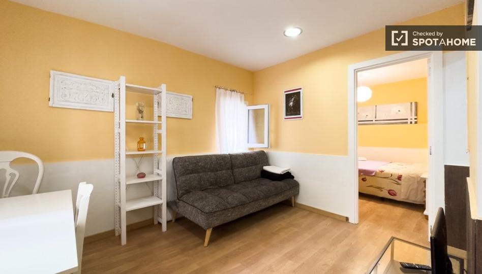 Este elegante apartamento de 1 dormitorio en Collblanc, Barcelona, ya está disponible para alquilar. La propiedad cuenta con aire acondicionado individual, lavadora privada y cocina totalmente equipada, lo que lo convierte en un espacio muy práctico. Tenga en cuenta que no se admiten mascotas, pero se permite fumar con las ventanas abiertas. Todos los gastos (luz, agua y wifi) están incluidos. Spotahome ha revisado personalmente el apartamento para garantizar su calidad y el cumplimiento de nuestros estándares.