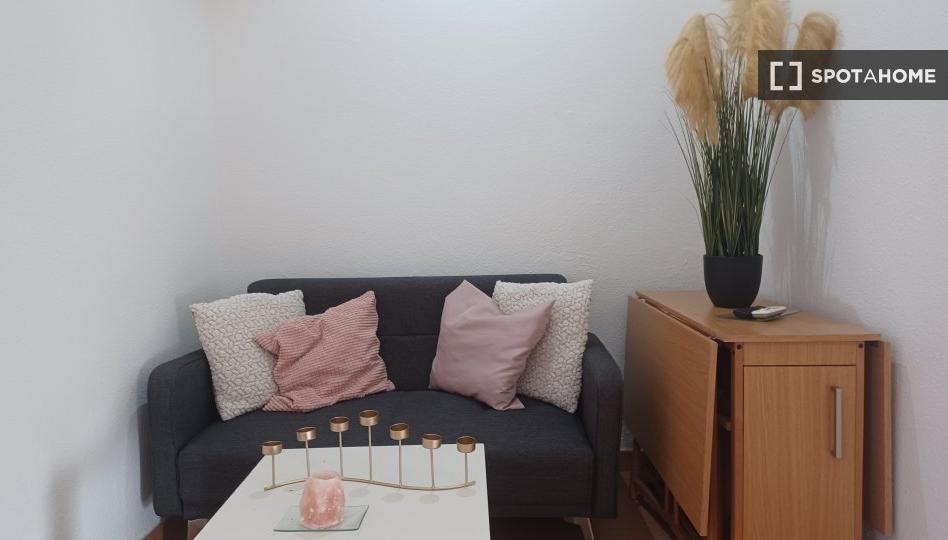 ¿Eres estudiante y buscas un espacio cómodo y moderno en Madrid? Este estudio amueblado ofrece aire acondicionado individual, cocina equipada y televisión. La propiedad ha sido revisada por Spotahome, lo que garantiza una experiencia de alquiler fiable. Se admiten parejas, lo que lo hace ideal para compartir alojamiento estudiantil.