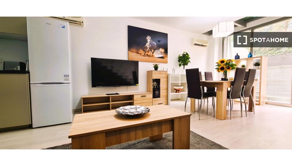 Descubra este maravilloso apartamento de 3 dormitorios en Valdefuentes, Madrid. Esta propiedad amueblada ofrece una cómoda experiencia de vida, con aire acondicionado individual, calefacción eléctrica, balcón y cocina equipada. Si bien hay una lavadora común disponible, no se permiten mascotas ni fumar dentro de la propiedad. Aunque el agua, la electricidad y el wifi no están incluidos, se gestionan directamente con el propietario al momento de la factura.