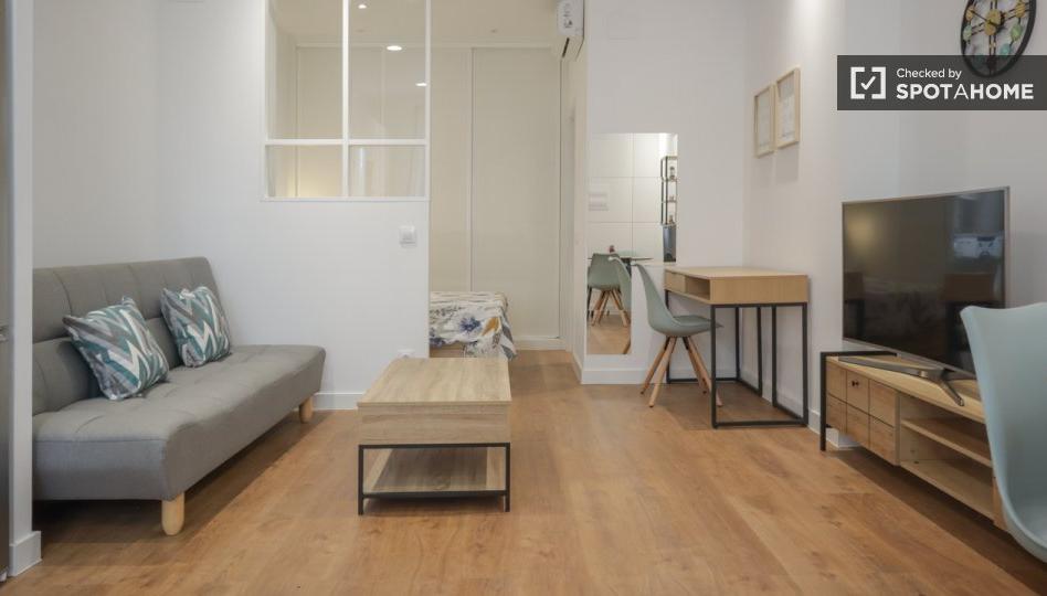 Este encantador estudio en Zofío es perfecto para quienes buscan comodidad y conveniencia. Totalmente amueblado, el apartamento cuenta con un diseño exterior, aire acondicionado individual y wifi incluido. No se permite fumar ni se admiten mascotas, lo que garantiza un ambiente limpio y agradable. El estudio es inspeccionado por profesionales de Spotahome para su tranquilidad.