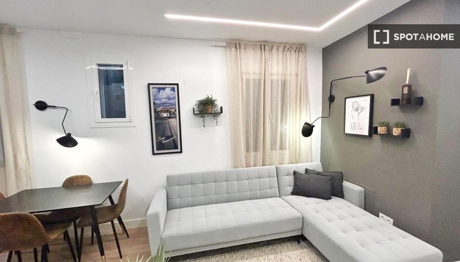 Este apartamento de 2 dormitorios en Palacio, Madrid, está completamente amueblado con comodidades modernas. Cuenta con cocina equipada, habitaciones con aire acondicionado y lavadora compartida. Encontrará electrodomésticos esenciales como lavavajillas, horno y televisor. La propiedad ha sido verificada exhaustivamente por Spotahome, lo que garantiza su calidad y fiabilidad.