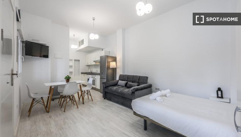 Descubre un encantador estudio en alquiler en el barrio de Los Rosales, en Madrid. Este alojamiento está completamente amueblado e incluye una cocina equipada con electrodomésticos como horno. Además, la residencia ofrece una política inclusiva para todos: personas de cualquier género, profesionales, estudiantes y parejas. Los gastos de agua, luz, gas y wifi están incluidos en el precio. Se admiten mascotas, pero no está permitido fumar. Se permiten visitas nocturnas y el apartamento es monitorizado y revisado exclusivamente por Spotahome para garantizar su calidad y tranquilidad.