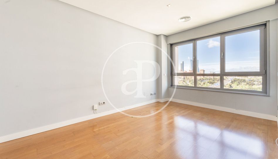 Según accedemos a la vivienda observamos el hall que da acceso al salón con vistas a las Cuatro Torres. La cocina está equipada con placa vitrocerámica, campana extractora, horno, microondas, nevera, así como lavadora. La zona de noche dispone de un dormitorio doble con armarios empotrados, y un baño completo en suite. Todas las estancias cuentan con aire acondicionado y calefacción por conductos con contadores individuales. Además, tienes acceso a una plaza de parking, incluida en el precio.