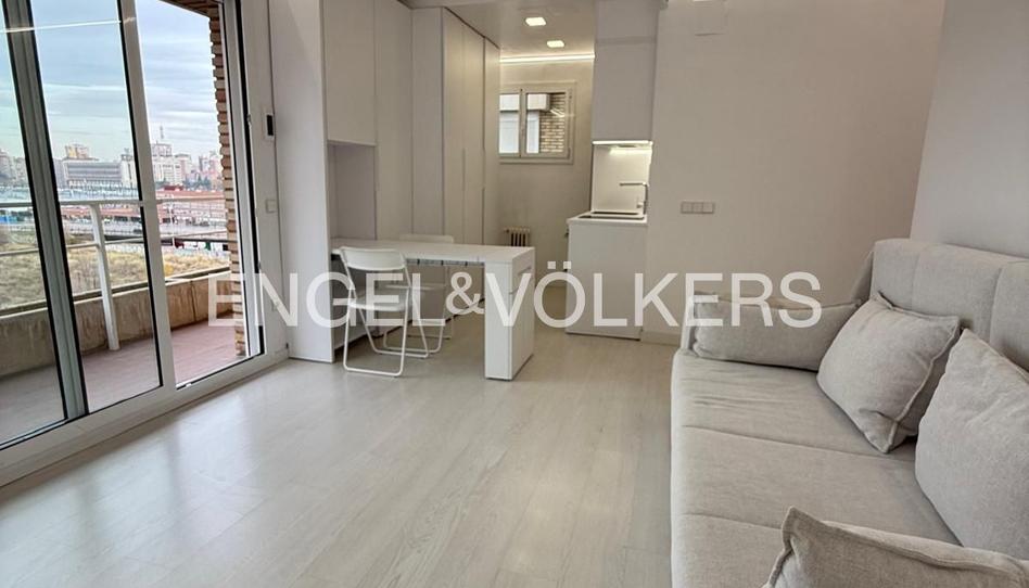 El salón, espacioso y luminoso, incluye un cómodo sofá cama y la posibilidad de completar el mobiliario según las necesidades del inquilino.