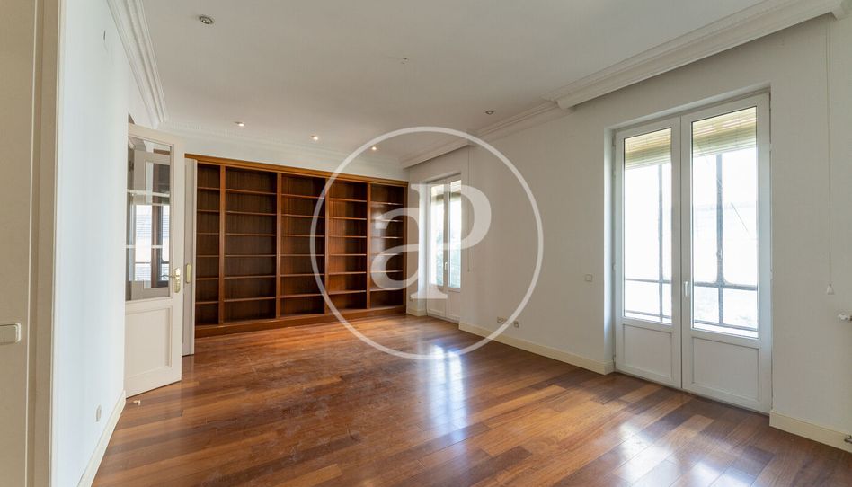 La vivienda consta de 171m² construidos repartidos en un amplio hall, dos habitaciones, dos baños, salón-comedor y cocina independiente. Desde la entrada accedemos al amplio hall muy común en este tipo de fincas señoriales. A mano izquierda encontramos una de las habitaciones con su vestidor, su baño en suite con bañera y vistas al exterior con un pequeño balcón, lo que hace que sea muy luminosa. A mano derecha desde el hall accedemos a la habitación principal muy amplia y luminosa por tener vistas a un gran patio de manzana; también con su baño en suite con bañera y vestidor, ambos con ventana. La cocina es independiente equipada con todos los electrodomésticos y por ultimo y siendo lo mas representativo de la vivienda es el amplio salón-comedor con dos grandes ventanales con balcón con vistas a la calle Monte Esquinza, siendo esta una de las mejores calles del barrio de Almagro por su cercanía al Paseo de la Castellana y por su cercanía a innumerables comercios, supermercados y por su puesto por estar muy bien comunicada por el transporte público. Además, esta vivienda se caracteriza por tener el suelo de parquet, techos altos de más de 3 metros, ventanas de doble cristal con rotura del puente térmico, calefacción individual de gas natural, portero, trastero y ascensor.