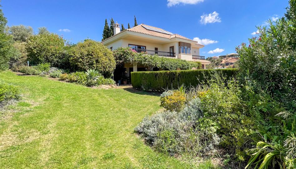 6 habitaciones · 5 baños · 533 m² construidos · Amplio jardín paisajístico · Piscina privada y jacuzzi · Vistas al mar, la montaña, el olivar y el campo de golf · Varias terrazas y balcones · Garaje doble y aparcamiento privado · Entorno residencial tranquilo y consolidado