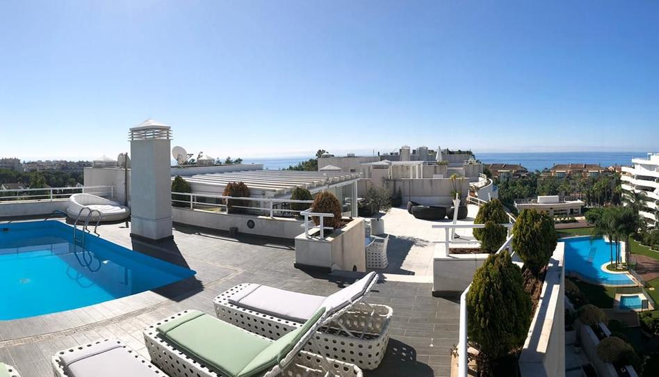 Este ático dúplex se encuentra entre las catalogadas como viviendas de lujo en la zona; donde resalta la ELEGANCIA y el BUEN GUSTO, decorado por uno de los decoradores de más renombre de la zona. La primera planta, consta de 4 dormitorios muy amplios y 5 baños, un salón, cocina, comedor; en esta misma planta encontramos una generosa terraza que acompaña bordeando todas las habitaciones permitiendo su acceso desde la mayor parte de las estancias, incluyendo algunos dormitorios; En la segunda planta, una inmenso solárium acoge una segunda cocina, que sirve al salón cubierto con calefacción para en invierno, el lugar ideal para las celebraciones de la familia o simplemente para disfrutar de una tarde en la tranquilidad de tu hogar, tomando sol o nadando en la piscina que se encuentra en una privada elevación de la terraza, rodeado de vistas hermosas al mar y montaña.