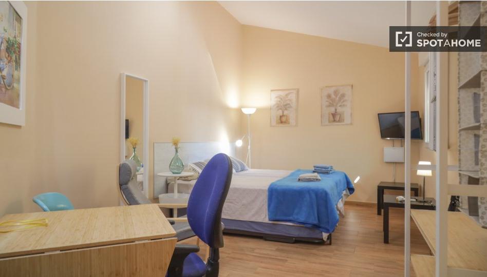 Este encantador apartamento de 1 dormitorio está diseñado para estudiantes y ofrece comodidades como balcón, aire acondicionado individual, cocina totalmente equipada y lavandería privada. El apartamento también tiene todos los gastos cubiertos, incluyendo luz, agua, gas y wifi, y Spotahome ha revisado personalmente la propiedad.