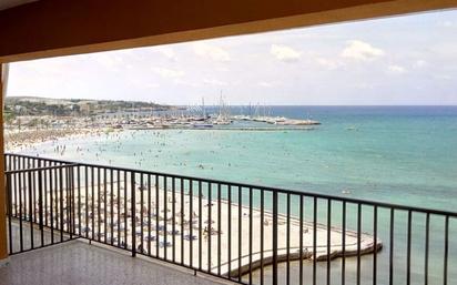 Fantástico apartamento completamente reformado situado en primera línea de playa en S'Arenal – Playa de Palma. Ubicado en la sexta planta de un edificio residencial con ascensor, esta propiedad ofrece unas espectaculares vistas abiertas al mar y acceso directo al paseo marítimo y a la playa. La vivienda cuenta con aproximadamente 105 m² distribuidos en un amplio salón-comedor con cocina abierta tipo office, todo ello orientado hacia el mar, lo que permite disfrutar de una gran luminosidad y unas vistas privilegiadas a la Bahía de Palma. Desde el salón se accede a una agradable terraza cubierta de aproximadamente 20 m², ideal para contemplar el mar, la Playa de Palma y el puerto deportivo del Club Náutico del Arenal. La propiedad dispone de tres dormitorios dobles, un baño completo con ducha moderna y un aseo de cortesía. Además, cuenta con una coladuría independiente equipada con lavadora. El apartamento está equipado con aire acondicionado frío/calor, armarios empotrados y electrodomésticos en la cocina. Se alquila sin muebles. De forma opcional, por un suplemento de 200 € mensuales, se ofrecen dos amplias plazas de aparcamiento modernas situadas aproximadamente a 200 metros del edificio. Características destacadas: Primera línea de mar Terraza cubierta de 20 m² con vistas al mar 3 dormitorios dobles 1 baño + 1 aseo Aire acondicionado frío/calor Cocina equipada Posibilidad de 2 plazas de parking (200€/mes) A pocos pasos del paseo marítimo y del Club Náutico del Arenal Si está interesado en la propiedad, póngase en contacto con nosotros.