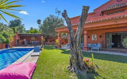 ¡Posibilidad alquiler opción compra! Excepcional villa en inmejorable localización, Puerto Banús.(Precio a consultar alquiler corta temporadadepende de las fechas) 600m2 construidos sobre una parcela de 1250m2 con una de las mejores orientaciones, Sur-Oeste. Fantástica villa con carácter andaluz y toques de estilo moderno. Distribuida en dos plantas. Desde la entrada de la vivienda accedemos a zona ajardinada con acceso a la entrada cubierta con porche. Hall de entrada con aseo para invitados, acceso a hermosa cocina de gran tamaño con comedor separado con un excepcional tragaluz en el techo que hace un ambiente muy agradable a cualquier hora del dia. En la cocina tenemos una habitación con baño para personal de servicio. Desde esta gran cocinacomedor tenemos acceso a jardín y zona de barbacoa, también tenemos acceso a louge cerrados con amplio sofá y televisión.Amplio salon con gran chimenea y acceso a terraza y jardín. También dispone de dos grandes habitaciones ensuite en la planta de salón. subimos por escaleras de madera que da acceso a habitación principal con vestidor y baño con jacuzzi.En la misma planta hay otra habitación con terraza privada. El jardín! fantástica área con piscina paisajista, terraza cubierta con barbacoa, nevera. Ideal para pasar un fantastico dia. Esta vivienda cuenta también con un estudio en independiente en la planta baja de la vivienda. Totalmente reformado con su propio baño. Aparcamiento cubierto privado. Una casa en una de las mejores urbanizaciones privadas de Puerto Banús, a solo 5 min andando de la playa Jose Banus.