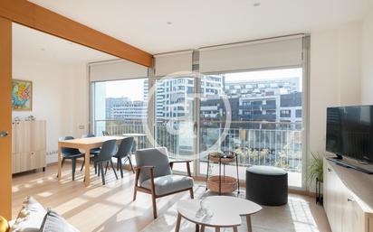 Disponible a partir del 8 de abril de 2026. Disponible solo para alquileres de más de 32 días con fines de ocio, vacaciones, recreativos o culturales, y siempre que se acompañen de la documentación correspondiente que acredite dicha finalidad. ¿Te imaginas vivir durante tu estancia en Barcelona en un piso moderno, muy bien ubicado y con piscina? En este luminoso y recién renovado piso de 83m2 no tendrás que imaginarlo, pues tiene todo lo que necesitas y además cuenta con 2 terrazas que te permitirán relajarte y aprovechar el clima de la ciudad condal. Decorado con mucho estilo, nos recibe el espacioso salón comedor con la espectacular vista hacia la Avenida Diagonal. En este espacio podrás descansar viendo tus programar favoritos o disfrutar una comida en la terraza, además en la esquina del salón encontrarás un escritorio que resultará perfecto si estudias o trabajas desde casa. La cocina, es semi independiente, y está totalmente equipada con utensilios, vajilla y todos electrodomésticos que necesitas para cocinar en tu día a día, desde cocina de vitrocerámica, nevera, horno, lavavajillas, hasta la imprescindible cafetera. La zona de descanso cuenta con 2 habitaciones con salida a la segunda terraza que tiene vista hacia la piscina. Las habitaciones son dobles y cuentan con armario; la habitación principal es tipo suite. En total, el piso tiene 2 baños completos y con ducha, El piso cuenta con aire acondicionado y calefacción por bomba de frío y calor, además de fibra óptica. Ubicado en la intersección de la Calle Venezuela y Avenida Diagonal. Al lado, se encuentra el parque del Centro de Poblenou que resulta perfecto para realizar actividades deportivas o ir de paseo. Es una zona muy bien abastecida, en los alrededores encontramos todo tipo de comercios, bares, restaurantes y supermercados. A 6 minutos andando se ubica la estación mas cercana "Selva Mar" (L4); a 12 minutos el centro comercial Las Glories; a 15 minutos, la Plaza de las Glorias Catalanas donde se encuentra el Museo del Diseño, la Torre Agbar, el Mercat dels Encants, entre otros. A 16 minutos se encuentra la ronda litoral donde disfrutarás del hermoso paseo al lado de la playa. *Parking opcional a 120eur por mes*