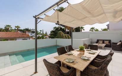 Villa moderna de 3 dormitorios y 4 baños en el corazón de Nueva Andalucía con muebles nuevos. La villa tiene una gran sala de estar y comedor de espacio abierto con una cocina totalmente equipada que fluye hacia la sala de estar al aire libre, perfecta para cenar, recibir invitados, tomar el sol y nadar en la espectacular piscina privada. La villa también tiene una terraza en la planta superior perfecta para tomar el sol todo el día. La propiedad se encuentra a poca distancia de tiendas y restaurantes y a solo 10 minutos en coche del infame Puerto Banús.