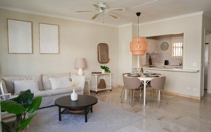 Este inmueble destaca por su ambiente acogedor y luminoso, perfecto para quienes buscan tranquilidad y calidad de vida en una de las zonas más demandadas de la Costa del Sol. La vivienda cuenta con dos amplios dormitorios y un baño completo, distribuidos en 79m² construidos que aprovechan al máximo cada rincón. El salón-comedor, elegantemente amueblado y con aire acondicionado, se abre a una terraza de 13m² con vistas al jardín comunitario, creando un espacio ideal para relajarse. La cocina está totalmente equipada, ofrece funcionalidad y diseño facilitando el día a día con electrodomésticos modernos y acabados de calidad. El apartamento se sitúa en una comunidad cerrada que garantiza seguridad y privacidad, y dispone de piscina, jardines y garaje comunitarios, proporcionando todas las comodidades para una vida comoda. Su buen estado de conservación permite entrar a vivir de inmediato, sin necesidad de reformas. Además, su proximidad a campos de golf, colegios y restaurantes lo convierte en una opción muy atractiva para familias, parejas o amantes del ocio y el deporte. Entre sus características adicionales destacan la cercanía a todo tipo de servicios y cabe destacar que no esta permitido tener mascotas, lo que asegura un entorno tranquilo y bien cuidado. Esta propiedad representa una excelente oportunidad para quienes desean disfrutar del estilo de vida mediterráneo, con todas las ventajas de vivir en la Costa del Sol.
