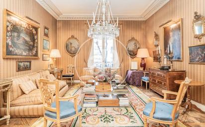 PISO CON VALOR HISTÓRICO EN ALMAGRO Esta vivienda forma parte del edificio construido en 1900 por el arquitecto Cesáreo Iradier y Uriarte, alberga historias que datan del siglo XX. Se trata de una casa especial, única, que fue residencia de noble familia madrileña, que conserva el encanto y la majestuosidad que a lo largo de los años ha atesorado. Se alquila amueblada como se aprecia en esta presentación. Está ubicada en el prestigioso barrio de Almagro, en la calle Caracas. Se compone de tres amplias plantas. La entrada principal y entrada de servicio cuentan con ascensor propio. Al acceder a la vivienda nos encontramos con un gran recibidor, varios salones de reuniones y un precioso comedor principal. Cuenta con 3 dormitorios, dos baños y un aseo de cortesía. Un salón muy especial en terraza cubierta y una terraza descubierta disfrutable. También se encuentra una sala de restauración, anteriormente utilizada para el trabajo en libros y obras de arte, hoy se podría utilizar como despacho o sitio de estudio. Dos cocinas completas, con su menaje, respectivos salones office, y zona de servicio. Es ideal para los amantes del arte, la historia y el valor de los espacios con encanto y tradición. Especial para vivir una experiencia única de la auténtica Madrid. El privilegio de su locación y el valor de su pasado resaltan con sus techos altos y grandes ventanales. Se alquila para cortas y largas estancias, también para eventos especiales. ¿Te imaginas vivir aquí? Ref. AM2402054 Nº AICAT: 8446