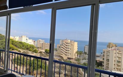 Apartamento en la playa, con dos dormitorios, terraza con vistas al mar, cocina equipada, aire acondicionado. Dispone de garaje subterráneo con acceso desde el ascensor. La urbanización tiene piscina y zona ajardinada. Disponible para alquiler temporal .
