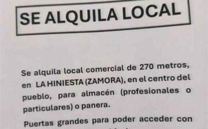 Se alquila local en la HINIESTA ( situación a 7 kilómetros de Zamora). Puerta grande, para poder entrar camión, tractores, furgonetas... Situación, en el centro del pueblo.