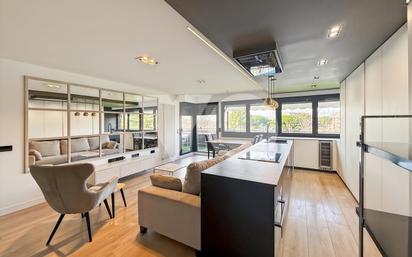 VOhome presenta esta espectacular vivienda recién reformada, donde el diseño contemporáneo y la alta calidad de los materiales se combinan para crear una vivienda moderna, funcional y llena de estilo. La zona de día se organiza en un amplio salón-comedor de concepto abierto, con una isla central que articula el espacio y aporta un carácter moderno y social, ideal tanto para el día a día como para reuniones. La cocina se encuentra completamente amueblada y equipada, lista para entrar a vivir, cuidando cada detalle con un diseño actual y elegante. Desde el salón se accede a una agradable terraza con jardín vertical, que aporta frescura y privacidad, y disfruta de vistas despejadas a la urbanización, creando un ambiente tranquilo y luminoso. La zona de descanso está compuesta por cuatro dormitorios, todos ellos con armarios empotrados, ofreciendo una excelente capacidad de almacenaje. La vivienda dispone de dos baños completos con plato de ducha, uno de ellos en suite, con un diseño moderno y funcional. Calefacción individual de Gas natural. Aire acondicionado por conducto con bomba de frio y calor Una vivienda única por su reforma, calidad y estilo, pensada para quienes buscan confort, diseño y espacios bien aprovechados en un entorno cuidado. La vivienda incluye plaza de garaje y trastero, ambos con acceso directo desde el ascensor, aportando un extra de comodidad y funcionalidad. Se encuentra ubicada dentro de una urbanización privada, cuidada y exclusiva, que dispone de piscina, amplias zonas verdes, pista de pádel y gimnasio, ofreciendo un entorno ideal para disfrutar de calidad de vida sin salir de casa.