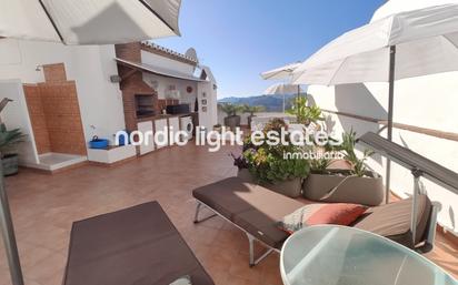 Exclusivo ático disponible para alquiler de larga duración en el encantador y típico pueblo blanco de Frigiliana, situado a tan solo 10 minutos en coche de Nerja y de sus playas. Disponible ya!!!! Ubicada en una segunda planta sin ascensor. Una vivienda luminosa, moderna y muy cuidada, ideal para quienes buscan privacidad, confort y unas vistas inigualables. Cuenta con tres dormitorios con armarios empotrados, un baño completo y un aseo de cortesía, además de un amplio salón-comedor con cocina integrada de estilo contemporáneo, que da acceso directo a una terraza con vistas panorámicas al mar y a la montaña. Dispone de aire acondicionado en todas las estancias, lo que garantiza una temperatura agradable en cualquier época del año. Uno de sus principales atractivos es la enorme terraza privada en la azotea, completamente amueblada con una zona chill-out, una cocina exterior con barbacoa integrada, una mesa de comedor para seis personas, una ducha exterior, tumbonas y espacio de almacenamiento adicional. Un lugar privilegiado para disfrutar del sol, el aire fresco y unas inolvidables vistas panorámicas. Incluye también plaza de aparcamiento privada y un trastero muy amplio situado en el edificio contiguo. Piscina comunitaria disponible para el uso de los residentes. Condiciones: Hay que demostrar justificante de ingresos fijos Un mes de fianza Gastos de agua y electricidad no incluidos No se admiten mascotas En Nordic Light Estates nos comprometemos a ofrecerte un servicio profesional y de confianza durante todo el proceso de alquiler