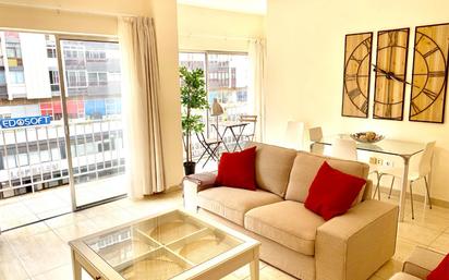 Vivienda recién reformada y amueblada junto a Las Canteras Se alquila estupenda vivienda completamente amueblada y recién reformada, situada en una ubicación privilegiada, a pocos pasos de la Playa de Las Canteras y de El Corte Inglés, en plena zona comercial, de ocio y con todos los servicios al alcance. La vivienda se distribuye en dos dormitorios con roperos empotrados, baño con plato de ducha, cocina amueblada y equipada con placa de inducción, secadora y microondas, y un luminoso salón-comedor con televisión LED de 50”. Destaca por su amplia cristalera con balcón a la calle, una acogedora terracita, además de disponer de pequeño trastero y videoportero. Una opción ideal para quienes buscan confort, buena ubicación y una vivienda lista para entrar a vivir. Importante: El contrato se realiza mediante compañía de seguros, por lo que es imprescindible acreditar ingresos actuales mediante nómina o pensión. No se aceptan mascotas.