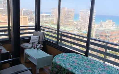Disponible hasta el 30 de Mayo. Vivienda en playa de San Juan, en la planta 10ª, 2ª linea de mar. Consta de salón comedor con acceso a terraza acristalada con bonitas vistas a la urbanización, cocina independiente equipada, 2 dormitorios con armarios y cama doble en el principal y literas en el otro y 1 baño. Es un piso muy luminoso con muy buena ventilación y con todo lo necesario para entrar a vivir. El precio incluye plaza de garaje techada, dentro de la urbanización que también disfruta de piscina y jardines. La zona esta repleta de todo tipo de comercios y servicios para total comodidad, con paradas de transporte publico a pie de calle y a 2 minutos de la playa. Fianza 1 mes No mascota