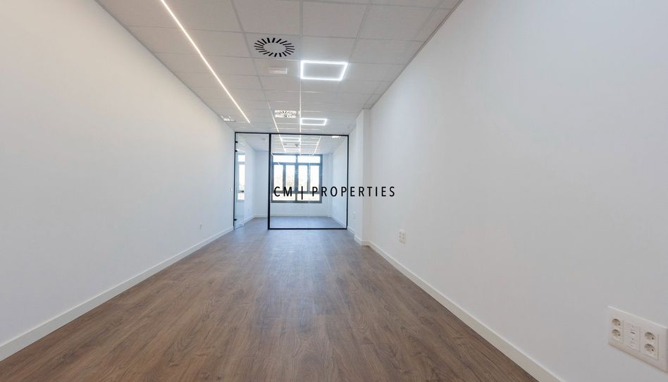 Con una superficie aproximada de 60 m², la oficina destaca por su excelente luminosidad natural, gracias a sus grandes ventanales con doble acristalamiento, que aportan confort térmico y acústico.