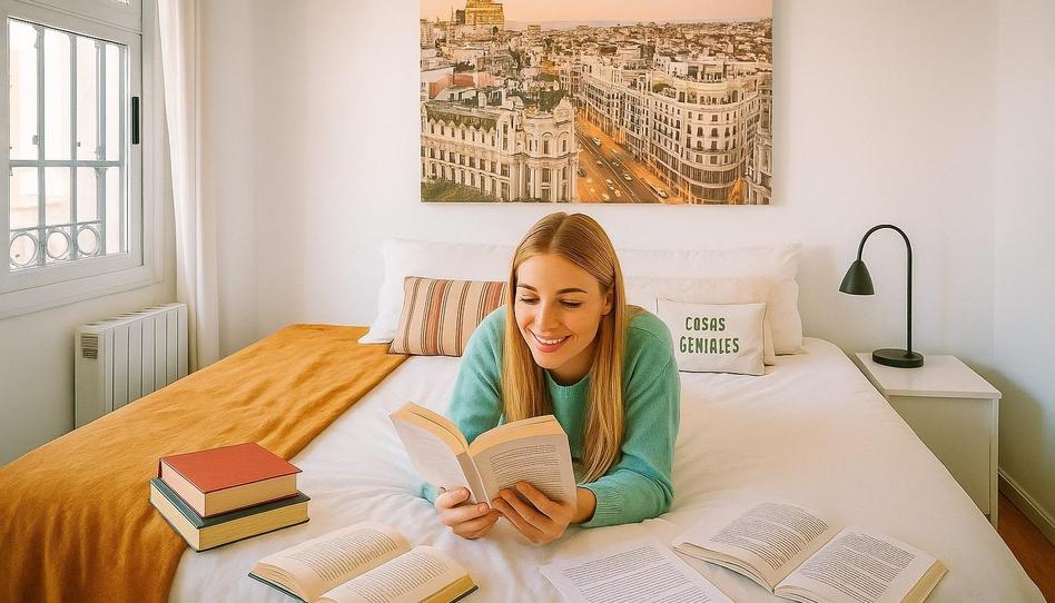 La habitación cuenta con una cama nido de 0,90m (doble colchón), TV, escritorio y un gran armario empotrado de 6 puertas. Además, dispone de un pequeño balcón privado con mucho encanto, en el cual, podrás aprovechar toda la luz de la tarde.