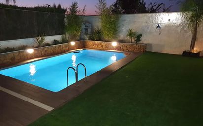 MAGNIFICO CHALET AISLADO CON PISCINA Y ZONA DE BARBACOA EN CAMPO ALEGRE TOTALMENTE REFORMADO, CONSTA DE 188 M2 CONSTRUIDOS EN DOS PLANTAS UBICADOS EN UNA PARCELA DE 336 m². SE ACCEDE A LA VIVIENDA MEDIANTE PUERTA PEATONAL INDEPENDIENTE QUE DA A LA ZONA DE JARDIN DELANTERO EN LA QUE SE UBICA UN PORCHE DESDE EL QUE SE ENTRA A LA CASA. TAMBIEN DISPONE DE ZONA DE GARAJE TECHADO UBICADO EN EL LATERAL DEL INMUEBLE. UNA VEZ DENTRO DE LA CASA, EN PLANTA BAJA TENEMOS EL RECIBIDOR Y UN CÓMODO ASEO JUNTO A LA ESCALERA DE SUBIDA A LA PLANTA ALTA. DESDE EL PROPIO RECIBIDOR SE ENTRA A LA ZONA DIÁFANA EN LA QUE SE UBICA EL SALÓN, LA COCINA Y EL CUARTO COMEDOR, TODO ELLO CLIMATIZADO CON AIRE ACONDICIONADO DE CONDUCTO. EN EL SALÓN TAMBIÉN HAY UNA ESTUFA DE PELLETS CON LA QUE SE CALIENTA TODA LA ZONA DIÁFANA. DESDE EL SALÓN, MEDIANTE UNA PUERTA OCULTA, SE ACCEDE AL LAVADERO Y AL CUARTO DE PLANTA BAJA. IGUALMENTE DESDE EL PROPIO SALÓN SE SALE A UN AMPLIO PORCHE DELANTERO Y DESDE ÉSTE AL JARDIN CON CÉSPED ARTIFICIAL EN EL QUE SE UBICA LA ZONA DE BARBACOA, LA PISCINA, UN ASEO Y UN TRASTERO. EN PLANTA ALTA HAY TRES DORMITORIOS, DOS BAÑOS COMPLETOS, UNO CON UNA CÓMODA DUCHA Y EL OTRO CON LAVADO DE DOS SENOS Y BAÑERA DE HIDROMASAJE. EN EL DORMITORIO PRINCIPAL TAMBIÉN HAY UN VESTIDOR. CABE MENCIONAR QUE TANTO EL CUARTO UBICADO EN PLANTA BAJA, COMO LOS TRES DORMITORIOS, DISPONEN DE AIRE ACONDICIONADO TIPO SPLIT.