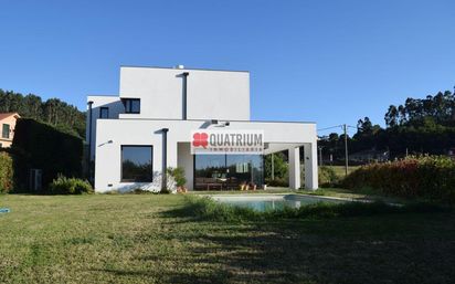 Esta exclusiva propiedad de líneas vanguardistas está ubicada en un entorno verde, tranquilo y muy bien comunicado, en Calo (Teo), a escasos minutos de Santiago de Compostela. Su diseño contemporáneo, la amplitud de espacios y el confort que ofrece la convierten en una opción ideal para quienes buscan calidad de vida sin renunciar a la cercanía de la ciudad. La vivienda cuenta con 425 m² construidos (266 m² útiles), distribuidos en tres plantas, y se encuentra en una parcela ajardinada de 1.359 m², perfecta para el disfrute al aire libre. Incluye una gran piscina privada, ideal para relajarse o compartir momentos en familia o con amigos. Distribución por plantas: Planta baja: Accedemos a través de un elegante hall recibidor que da paso a: Dormitorio con vestidor y orientación sur Baño completo con ducha y ventana exterior Habitación adicional actualmente utilizada como despacho Salón-comedor independiente, muy luminoso gracias a su orientación sur, con acceso directo al porche, jardín y piscina Cocina completamente amueblada y equipada, también con salida directa al exterior Planta primera: Suite principal muy luminosa, con terraza privada, amplio vestidor y baño en suite Dos dormitorios que comparten un baño completo Un dormitorio adicional con terraza privada Baño general con ducha para mayor comodidad Sótano: Capacidad para 4 vehículos Práctica zona de lavandería Espacio versátil con posibilidad de instalar una chimenea u otros usos Características destacadas: Piscina privada en parcela ajardinada Diseño moderno y cuidado al detalle Calefacción por aerotermia Excelente orientación y luminosidad natural Vivienda en perfecto estado de conservación Zona tranquila, rodeada de naturaleza A pocos minutos del centro de Santiago de Compostela Una propiedad que combina diseño, confort, eficiencia energética y un entorno natural privilegiado, ideal tanto como residencia habitual como segunda vivienda para quienes valoran la tranquilidad sin renunciar a las comodidades urbanas. 📞 Contáctanos para más información o para concertar una visita. ¡Te sorprenderá!