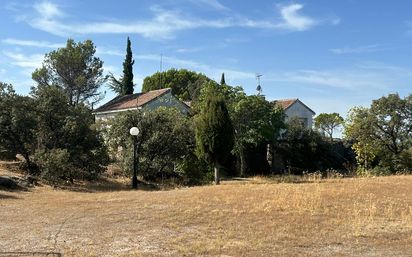 Espectacular finca urbana, situada en el corazón del Parque Natural de la Cuenca del Manzanares. Rodeada de fincas rústicas, esta propiedad ofrece vistas panorámicas de 360º que te dejarán sin aliento. A tan solo 1.000 metros de la parada de autobús, el acceso es fácil y cómodo, ya sea por camino de tierra o asfaltado. El terreno de la finca es totalmente llano teniendo su acceso rodado, parte por un camino de tierra y el resto asfaltado. Dentro de este terreno se encuentra ubicada la casa principal y varias dependencias. El chalet tiene una superficie aproximada de 520 m² construidos con una parcela de 5.000 m², según catastro 6.200 m² con una piscina clorada circular. La vivienda se desarrolla en dos plantas de la siguiente manera: Se accede a la misma por un hall de entrada de 15 m² que distribuye a un dormitorio doble de unos 18 m² y un baño completo, a un salón - cuarto de estar- bodega con chimenea de 70 m² y a la escalera que sube a la planta principal o noble. En esta misma planta y con un acceso independiente se encuentra un apartamento, actualmente la casa de guardas, con una superficie de unos 130 m² donde hay un salón comedor, una cocina amueblada, un cuarto de baño, dos dormitorios y un cuarto trastero. Planta principal: A esta planta también se puede acceder por la cocina a través de una escalera exterior, teniendo las siguientes dependencias. Un distribuidor con un aseo de cortesía, un salón - comedor de 90 m² con chimenea, con unos grandes ventanales con persianas automáticas, desde donde se disfruta de unas maravillosas vistas panorámicas. Un cuarto de estar o comedor de diario de 15 m² situado junto a la cocina - office (con despensa) y con una superficie de 20 m² aproximados con salida a una terraza mirador de 20 m². A los dormitorios se accede mediante un pasillo donde están situados los cuatro dormitorios, el principal en suite y dos baños completos. La calefacción es por radiadores por gas propano, la carpintería exterior es en aluminio y pvc y la interior es en madera lacada en blanco. Los suelos son de tarima flotante y gres. En el exterior se encuentra un garaje cerrado para dos coches y un aparcamiento techado para tres más. Dispone de puertas automáticas, riego automático y un pozo de sondeo a 100 m. En la parcela se encuentra una casita de muñecas de 20 m², una barbacoa de obra y un campo de fútbol. La parcela tiene diferentes especies arbóreas y monte bajo. Desde la finca se pueden ver fácilmente jabalís, zorros, conejos, buitres, águilas, etc. Lo destacable de esta finca es su ubicación por cercanía al núcleo urbano, las vistas espectaculares y la tranquilidad.
