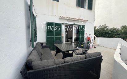 Se ofrece en alquiler con opción a compra este encantador apartamento adosado situado en una tranquila parcela compuesta por tan solo tres viviendas y sin comunidad, lo que garantiza mayor independencia y tranquilidad. La vivienda se distribuye en dos plantas y ofrece espacios funcionales y muy bien aprovechados. Al acceder a la propiedad nos recibe un amplio jardín privado de aproximadamente 80 m², con zona de barbacoa y un práctico trastero/cuarto de lavado junto a la misma. Desde el jardín se accede a un agradable porche descubierto de unos 30 m², perfecto para disfrutar del sol y del clima mediterráneo durante los meses más cálidos. En la planta principal encontramos un luminoso salón-comedor, una cocina independiente totalmente funcional, dos habitaciones (una individual y una doble con armario de buen tamaño) y un baño completo. La vivienda cuenta además con una característica muy especial: subiendo por unas escaleras laterales exteriores se accede a la segunda planta, donde se encuentra una tercera habitación doble con baño en suite y acceso independiente, ideal para invitados o para disponer de mayor privacidad. En la parte superior se sitúa una amplia azotea/terraza, compartida únicamente con otro chalet de la parcela, desde la que se pueden disfrutar de agradables vistas a Cala en Porter. La propiedad se entrega completamente amueblada y equipada, lista para entrar a vivir. Dispone de aire acondicionado frío/calor en todas las estancias, ventanas de doble cristal tipo Climalit y contraventanas de PVC, garantizando confort durante todo el año. Condiciones del alquiler con opción a compra: Entrada inicial: 20% del precio de venta Alquiler mensual: 1.500 € Plazo para ejercer la compra: 3 años Las rentas se descontarán del precio final de compra. Una excelente oportunidad para acceder a una vivienda en una de las zonas más demandadas del sur de Menorca, ideal como residencia habitual, segunda vivienda o inversión. www.fincasgomila.com [IW]