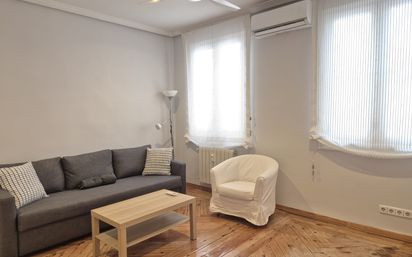Amplio apartamento amueblado situado entre las calles Ayala y Don Ramón de la Cruz, muy cerca de la Plaza del Marqués de Salamanca. El inmueble consta de un gran salón que dispone de aire acondicionado y un enorme armario empotrado. La cocina es independiente, está amueblada con todos los electrodomésticos y posee gran capacidad de almacenamiento. El dormitorio es muy espacioso, como resultado de la unión de dos habitaciones que tenía este inmueble en origen, lo cual proporciona la creación de una zona muy apropiada para dedicar a estudio o teletrabajo; adicionalmente el dormitorio cuenta con un gran armario empotrado y aire acondicionado. El apartamento se entrega recién pintado. La vivienda es extraordinariamente luminosa y tranquila, se encuentra en la quinta planta de una buena finca con portero físico. Dispone de techos altos, suelo de madera, paredes con pintura lisa, calefacción individual y agua caliente mediante gas natural. Este estupendo apartamento está situado en el Barrio de Salamanca, zona residencial con alto poder adquisitivo, el mejor lugar para vivir en el centro de Madrid. Dando un paseo llegamos a la zona comercial de lujo denominada "La Milla de Oro", entre las calles Ortega y Gasset, Príncipe de Vergara, Jorge Juan y Serrano, esta zona se caracteriza por poseer tiendas de alta costura, las mejores joyerías y las boutiques de lujo españolas e internacionales más prestigiosas. La zona está dotada de una gran oferta de excelentes restaurantes y terrazas de moda donde disfrutar de la gastronomía y el tiempo libre, en el entorno de las calles Jorge Juan, Ortega y Gasset y Príncipe de Vergara. A cinco minutos caminando llegamos a El Corte Inglés de calle Goya y en el área más cercana encontramos todo tipo de instalaciones y lugares para disfrutar de la cultura y el tiempo de ocio como el Teatro Alcalá, varias salas de cine, diversas salas de exposiciones, el Movistar Arena (antiguo WiZink Center), el Centro Comercial ABC Serrano y el Parque del Retiro. El edificio está al lado de las estaciones de Metro Goya y Velázquez, junto a múltiples líneas de autobús y tiene rápido y fácil acceso a M-30, M-23, A-2 y A-3.