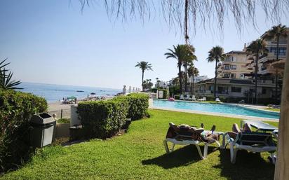 Exclusivo apartamento en primera línea de mar – Larga temporada | Mijas Costa Se alquila magnífico apartamento de dos dormitorios en prestigiosa urbanización de lujo en Mijas Costa, ubicado en primera línea de mar, con vistas abiertas y un entorno privilegiado. La vivienda, reformada recientemente, destaca por su diseño actual, luminosidad y excelente distribución: Dormitorio principal con cama de matrimonio Segundo dormitorio, ideal como dormitorio de invitados Elegante salón con cocina integrada, totalmente equipada Baño completo Amplia terraza con vistas frontales al mar, perfecta para disfrutar del clima y la tranquilidad de la zona La urbanización ofrece completas zonas comunes: Piscina comunitaria Pistas de tenis y pádel Plaza de garaje (no asignada) Ubicado en una zona tranquila y exclusiva, con acceso directo al mar y excelentes comunicaciones, ideal para quienes buscan calidad de vida, confort y privacidad. Condiciones: Alquiler de larga temporada Se requiere solvencia económica demostrable, se hace seguro de impago. Ideal para parejas de funcionarios Solo para parejas Abstenerse personas sin solvencia Una vivienda única para disfrutar del mar todo el año en una de las mejores zonas de la Costa del Sol.
