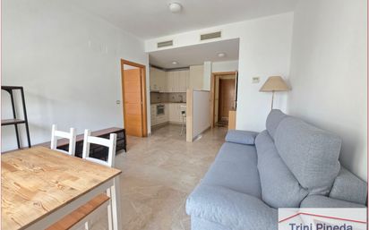 El apartamento dispone de salón con cocina equipada con electrodomésticos, dormitorio con armario empotrado y cama con cajones de almacenamiento y baño en suite con plato de ducha.