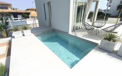 ALQUILER LARGA DURACIÓN, ABSTENERSE TEMPORADA. Inmueble singular donde los halla. Casa unifamiliar de obra nueva situada a tan solo 500 m del Puerto de Alcúdia, a tan solo 200 metros de la playa. Esta vivienda es única por su original construcción además de estar realizada con materiales de primera calidad. Vivienda aislada de uno 160 m2, terraza de unos 30 m2, con una piscina de 7m2, zona solárium, de 15 m2 en la terraza superior. Consta de semisótano, planta baja y dos plantas pisos. Tres habitaciones cada una con su propio vestidor y baño, y un aseo de cortesía en planta baja. Cuarto de instalaciones y trastero. Zona de jardín y aparcamiento. En planta baja, se encuentra salón con Smart Tv, cocina amueblada y con electrodomésticos, grandes ventanales y acceso a la piscina y terraza, en el primer y segundo dos dormitorios gemelos con baño en suite, y en tercera planta una terraza con vistas 360 º tanto dirección al mar como a la montaña. Ubicado en el puerto de Alcúdia, con todos los servicios próximos, a solo 5 min a pie del puerto, y a 2 min a pie de la playa. Se realizará estudio de solvencia, por ese motivo los ingresos mínimos demostrables deben ser de 6250 €. Primer pago consiste en dos meses de fianza y mes corriente. Suministros de luz y agua no están incluidos. Alquiler de larga duración. No se permiten mascotas. Agencia Asociada API y registrada en el Govern de les Illes Balears GOIBE 580797/2024