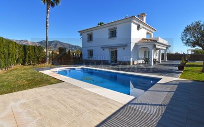 Chalet independiente en alquiler de larga temporada en La Alquería, Mijas. Exclusivo chalet en alquiler de larga temporada en La Alquería, Mijas, ubicado en una zona muy tranquila y rodeada de naturaleza, ideal para quienes buscan privacidad y calidad de vida. La vivienda ha sido completamente renovada y combina confort, amplitud y unas vistas espectaculares al campo y al mar. En la planta principal cuenta con un agradable porche, un luminoso salón comedor con cocina americana totalmente equipada, lavadero, un dormitorio y un baño con ducha. El exterior en planta baja cuenta con tres toldos automáticos y dos cortavientos, permitiendo disfrutar del espacio al aire libre con total comodidad durante todo el año. En la planta superior se distribuyen tres dormitorios adicionales, 2 baños (uno de ellos en suite) y una gran terraza desde la que disfrutar de vistas abiertas y despejadas. Terraza equipada con toldos transparentes, perfecta para aprovecharla también en los meses de invierno mientras se disfrutan las vistas despejadas. La vivienda dispone de aire acondicionado frío/calor, termo eléctrico y suelos de gres. En el exterior destaca su amplio jardín privado con piscina privada, perfecto para relajarse durante todo el año. Además, cuenta con un garaje cerrado con capacidad para dos coches y trastero. Nota: El mantenimiento del jardín y la piscina está incluido en el precio. Se aceptan mascotas. Los gastos de electricidad, agua, internet y alarma no están incluidos. Una oportunidad única para vivir con tranquilidad, espacio y vistas privilegiadas en Mijas. Kasa Coast inmobiliaria de Fuengirola. #ref:AY4790