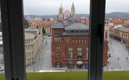 Oficina en octavo piso , mucha luminosidad, nueva, totalmente restaurada con acabados de máxima calidad , tres estancias separadas por acristalamiento. Magníficas vistas a la Plaza Santo Domingo y catedral de León . Gastos comunitarios 70 euros actualmente.