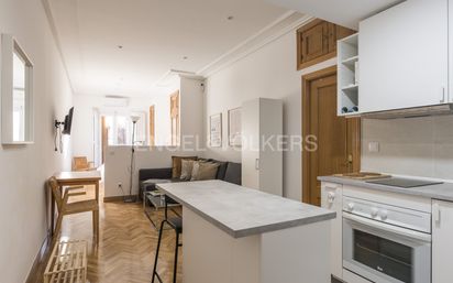 Engel & Völkers ofrece este luminoso loft reformado y amueblado en pleno corazón de Chueca. Disponibilidad: – A partir del del 20 de mayo 2026 – También alquiler por temporadas Ubicación inmejorable: A pocos metros de la zona comercial más exclusiva de Madrid y con paradas de metro, autobús y taxi al alcance de la mano. Características principales Superficie: 45 m² en un único ambiente diáfano separado por un tabique. Suelo: Parquet Dormitorio: Cama de matrimonio con canapé abatible Armarios: Empotrados Climatización: Split de aire acondicionado a estrenar Balcones: Ventana Climalit con salida a balcón y vistas a la calle Salón: Sofá cama convertible Cocina y equipamiento Totalmente equipada con todos los electrodomésticos: nevera, horno, vitro, microondas y pequeño electrodomestico. Cafetera Tetera eléctrica Licuadora Tostadora Plancha Aspiradora Secador de pelo T.V Menaje completo y ropa de cama incluida Baño Agradable y funcional Espejo con luz integrada Calentador de toallas Servicios incluidos Agua e internet Chueca-Justicia es un barrio de Madrid perteneciente al distrito Centro, que guarda los más bellos y antiguos monumentos de la ciudad, las más comerciales de las calles, así como los más importantes órganos del poder municipal, regional y nacional. Se encuentra limitado por las calles de Sagasta y Génova por el norte, El Paseo de Recoletos por el este, la calle Fuencarral por el oeste y la Gran Vía por el sur. Se trata de un barrio residencial muy popular por la gran variedad de tiendas, galerías, bares, restaurantes y espacios singulares, muy apreciado para pasear y salir con amigos. Conserva la arquitectura castiza típica de la ciudad, con edificios de balcones, calles estrechas y plazuelas. Destaca el edificio de la SGAE, una de las pocas construcciones modernistas de la ciudad. Se encuentra muy cerca de lugares emblemáticos de la ciudad como la plaza de Sol, Cibeles, Puerta de Alcalá, el Museo del Prado, el Palacio Real, la Catedral de Santa María la Real Almudena, el Teatro Real, y la Plaza de Oriente. Está muy bien comunicada mediante Metro (Tribunal: líneas 1 y 10, Chueca: línea 5) y autobuses.