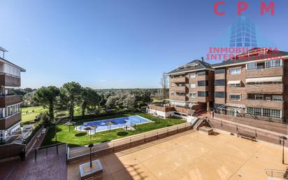 La Inmobiliaria Internacional CPM gestiona este estupendo piso reformado y sin amueblar, de 136 m2, 4 dormitorios y terraza; situado en urbanización cerrada, con estupendas zonas comunes, cercano al centro de golf Las Rejas, que consta de: Hall de entrada. Una cocina con office, totalmente equipada, con todos los electrodomésticos incluidos. Tendedero y lavadero. Un amplio salón comedor con grandes ventanales, que dan salida a una terraza, con estupendas vistas del campo de golf. 4 dormitorios con armarios empotrados; el principal en suite, con su baño completo integrado. 1 baño completo. El piso reformado y sin amueblar, dispone de suelo de parquet de madera natural, vídeo portero, ventanas Climalit, puerta blindada, agua caliente y calefacción por caldera de gas natural. La vivienda incluye 2 amplias plazas de garaje y un gran trastero. La urbanización cerrada, ofrece una zona comunitaria con un espléndido jardín arbolado y piscina. Estas instalaciones hacen las delicias de los mayores para practicar deporte y una zona segura para que jueguen los niños durante todo el año. Para mayor seguridad la comunidad ofrece servicio de portería, cámaras de seguridad y vigilancia las 24 horas. Sobre la ubicación del piso, es inmejorable, ya que se encuentra próximo al campo de Golf Las Rejas y al Hospital Universitario Puerta de Hierro. Paradas de taxis y diferentes líneas de autobús que paran frente de la urbanización. El Acceso a la M-50 Y M-40 es muy rápido. Alrededor de la vivienda se encuentran varios centros comerciales y zonas de ocio (CC Paular, CC Centro Oeste), parques (Parque Cerro del Aire, El Pardo), hospitales, centros deportivos (Club Internacional de Tenis, Real Club Puerta de Hierro, Las Rejas Golf) colegios y universidades, (Colegio Highlands School) y hospital (Hospital Universitario Puerta de Hierro).