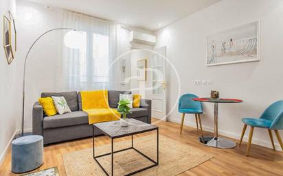 En el privilegiado Barrio de Las Letras se encuentra este bonito piso de 80 m². La vivienda ha sido recientemente reformada con materiales de calidad y muy buenos acabados. Desde la puerta de entrada accedemos al hall que da acceso al resto de estancias. El salón-cocina es un espacio amplio, con zona de comedor y zona de sofás, amueblado con todo lo necesario para entrar a vivir. La cocina está equipada con todos los electrodomésticos de alta gama y menaje. La zona de noche consta de dos dormitorios, ambos con armarios empotrados. La habitación principal tiene baño en suite y la segunda tiene baño independiente. Ubicado en una finca clásica con ascensor, suelos de parquet y aire acondicionado en todas las estancias. Ubicación privilegiada, próximo a la parada de metro de Antón Martín y al parque de El Retiro. Una zona de gran oferta cultural, gastronómica y ocio.