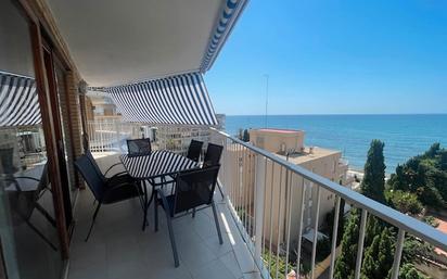Disponible para los periodos de verano y de Septiembre a Junio del 2027. Increíbles vistas al mar y a la costa, para disfrutar de la playa. Consta de 2 dormitorios dobles con armarios empotrados, 1 baño en suite y 1 aseo, un gran salón comedor y una cocina con galería. Todo exterior, terraza muy amplia con toldos, cocina amueblada y equipada, 2 plazas de parking en urbanización, ascensor, ventanas de aluminio. Cerca del cuartel de la guardia civil, zona muy tranquila y bien comunicada en primera línea de playa. No tiene piscina Mascota pequeña.