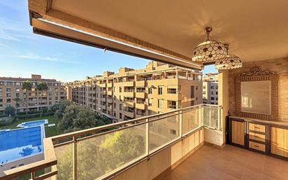Disfrute de la calidad de vida en una de las zonas más demandadas de Valencia. Presentamos este luminoso piso sin amueblar de 132 m2 (118 m2 útiles) ubicado en la cuarta planta de la prestigiosa urbanización cerrada Marina Alta no5, en el barrio de Sant Pau en Campanar. La vivienda destaca por su excelente distribución y la calidez de sus suelos de parqué: Zona de Día: Un amplio y acogedor salón-comedor muy luminoso con acceso directo a una espectacular balcón de 13 m2. Con orientación este, es el lugar ideal para disfrutar del sol de la mañana y desayunar con vistas despejadas a las piscinas y jardines del residencial. Cocina Independiente: Espaciosa, con zona de office para comer y equipada con vitrocerámica y horno. Cuenta con una galería anexa (lavadero) donde se ubica una caldera Vaillant recién instalada. Zona de Descanso: Dispone de 3 habitaciones totalmente exteriores. Dos de ellas son individuales con armarios empotrados, y la habitación principal es tipo suite, con zona de vestidor y baño privado. Baños: Un baño completo en suite y un segundo baño de cortesía para el resto de la vivienda. Climatización total: Aire acondicionado centralizado (frío/calor) y calefacción por radiadores de Gas Natural en todas las estancias. Seguridad: Videoportero y puerta acorazada Plaza de garaje incluida en el precio con acceso directo desde el ascensor. La urbanización Marina Alta 5 (construida en 2005) ofrece servicios de primer nivel para toda la familia: Piscina comunitaria y amplias zonas verdes ajardinadas. Seguridad máxima: urbanización cerrada con vigilancia y control de acceso. Situado estratégicamente en Campanar, con todas las comodidades a un paso: Conectividad: A pocos minutos de la estación de Metro Beniferri y diversas líneas de autobús. Salud y Educación: Próximo al Hospital Arnau de Vilanova y rodeado de los mejores colegios y academias de la zona. Ocio y Compras: Amplia oferta de supermercados, cafeterías, restaurantes y pequeños comercios locales. La vivienda se alquila con los electrodomésticos mencionados (horno y vitrocerámica). No incluye nevera, lavadora, microondas, lavavajillas ni muebles.
