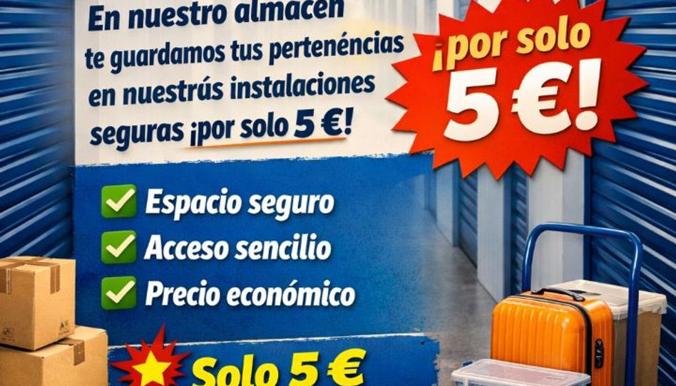 ¿Necesitas espacio extra? Ofrecemos **trasteros económicos desde solo 5€ al mes**. Ideales para guardar cajas, muebles, ropa de temporada u objetos personales. Espacios seguros, prácticos y con fácil acceso. ¡Aprovecha esta oportunidad y gana espacio en tu casa por muy poco!