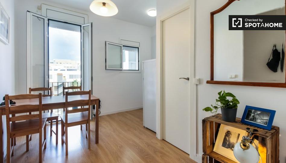Bienvenido a este elegante y amueblado apartamento de 2 habitaciones ubicado en Sant Antoni, Barcelona. El apartamento está cuidadosamente diseñado para ofrecer una experiencia de vida cómoda. La cocina está equipada y el apartamento también cuenta con lavadora y balcón privados, lo que lo hace perfecto tanto para profesionales como para parejas y estudiantes. Spotahome ha revisado personalmente la propiedad, lo que garantiza su calidad y cumplimiento de los estándares.