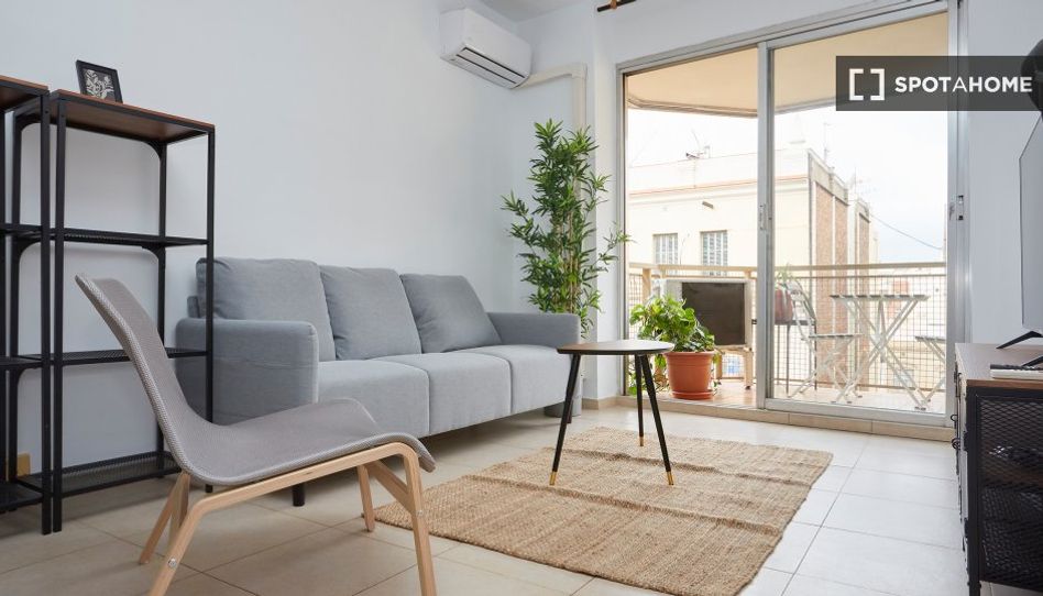 Disfrute de una vida cómoda en este apartamento de 2 habitaciones completamente amueblado en Vila de Gràcia, Barcelona. El apartamento está equipado con una cocina totalmente equipada con lavavajillas y horno, aire acondicionado individual y balcón/terraza. Se admiten parejas y profesionales, y Spotahome ha revisado la propiedad para garantizar su calidad. Todas las facturas están incluidas con un límite global. No se permite fumar ni tener mascotas. El servicio de limpieza periódica tiene un coste adicional.