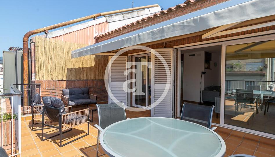 Este ático te da la bienvenida con una elegante zona de biblioteca decorada con gusto, que marca el tono acogedor y funcional de toda la vivienda. Desde allí se accede a la luminosa zona de día, con un amplio salón comedor que incluye sofás, televisor y una zona de comedor bien delimitada. Desde el salón se accede a una gran terraza con vistas abiertas a Collserola, equipada con muebles exteriores ideales para tomar el sol o relajarse al aire libre. Muy cerca, un baño completo con bañera da servicio a esta parte de la vivienda.