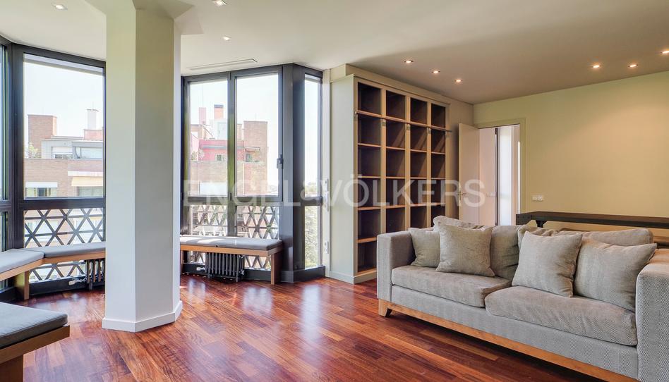 Esta luminosa vivienda dispone de un gran saón comedor con amplio ventanal con vistas al Monasterio de Pedralbes.