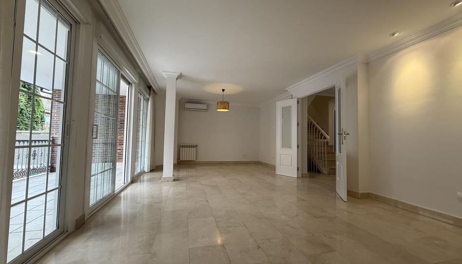 Pleno Inmobiliaria alquila ( sin comisión de agencia), excelente chalet adosado ubicado en la mejor zona de Boadilla del Monte. En un espacio residencial moderno, con amplias avenidas, y zonas verdes, pero a un paso del centro histórico, del ayuntamiento, de los transportes públicos, del centro de salud, de la policía local, y guardia civil, de colegios e institutos, parques, supermercados, a las carreteras de acceso a la población, y un largo etcétera de comercios y servicios, y todo, sin necesidad de coger el coche.