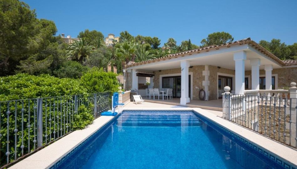 Descubra esta preciosa villa con vistas panorámicas al mar, situada en una posición elevada en la codiciada y tranquila zona de Costa de la Calma, en el suroeste de Mallorca, entre Santa Ponsa y Paguera. Construida en 2008, la propiedad combina un estilo moderno con toques mediterráneos y ofrece espacios amplios, techos altos y mucha luz natural, en una parcela de aprox. 1.200 m² rodeada de un jardín mediterráneo perfectamente cuidado. El salón, muy espacioso y luminoso gracias a sus grandes ventanales, se abre a una gran terraza con zona de barbacoa y acogedores porches, ideal para disfrutar del clima de la isla durante todo el año. La vivienda dispone de 3 dormitorios, 2 baños en suite, aseo de invitados, y una cocina abierta de diseño. Para un confort superior, cuenta con suelo radiante en el salón y en los baños, además de aire acondicionado frío/calor. En el exterior, una piscina privada de agua salada con vistas despejadas al mar completa esta propiedad pensada para vivir con privacidad y calidad. Además, la parcela ofrece potencial para construir adicionalmente un apartamento independiente de aprox. 80 m². Alquiler: 5.500 EUR / mes, pago de 12 meses por adelantado, fianza: 3 meses. Comisión de agencia: 1,5 meses de alquiler + IVA. Gastos mensuales aprox.: 250 EUR electricidad (según consumo), 250 EUR agua (según consumo), 200 EUR mantenimiento piscina, 100 EUR alarma/seguridad, 70 EUR internet, 130 EUR seguro y basura.
