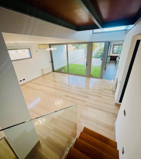 El chalet se distribuye en tres plantas. En el sótano, encontrarás un garaje con capacidad para tres coches y una sala de juegos ideal para momentos de diversión o reuniones familiares. La planta principal destaca por su gran salón y cocina acristalados, que ofrecen vistas al jardín y a una terraza de aproximadamente 100 metros, perfecta para disfrutar del clima mediterráneo. La planta superior, accesible a través de una elegante escalera de diseño, alberga tres amplios dormitorios y un despacho que puede convertirse en un cuarto adicional.